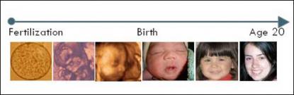 Although human development is usually divided into prenatal (before birth) and postnatal (after birth) periods, development is a continuum that begins at fertilization (conception). Birth is a dramatic event during development, resulting in a change in environment. Development does not stop at birth; important developmental changes occur after birth—development of teeth and female breasts, for example [all emphases in original].1